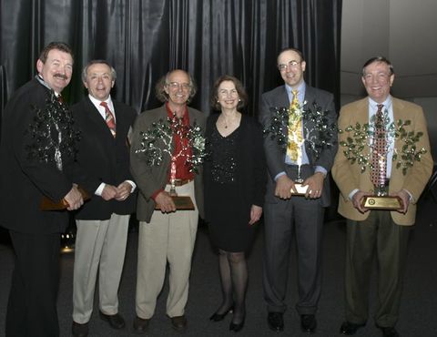 Winners of the U.S. Green Building Council’s Sacred Tree Leadership Awards pose with Council chair Steven Winter (second from left) and president Christine Ervin.