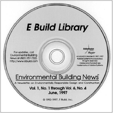 The E Build Library CD-ROM includes Adobe Acrobat Reader software for Mac, Windows, Unix and DOS systems. Current EBN subscribers qualify for a large discount from the non-subscriber price of $165. You can obtain the E Build Library CD-ROM for just $95, and you’ll also be eligible for large discounts on annual updates. To order, send in the insert card or call us at 802/257-7300. If you are not fully satisfied, you can return the CD-ROM for a full refund.