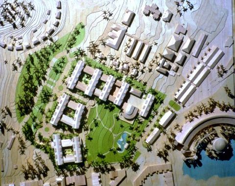 Vol. 8, No. 9 (September 1999 issue) about the Letterman Digital Arts project at San Francisco’s Presidio National Park. The picture we intended to publish, a model of the proposed campus, appears below.