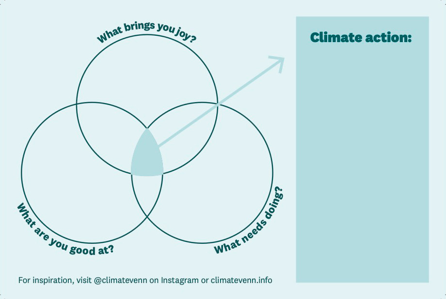 - Download Johnson’s climate Venn diagram template and write all over it until I can fit my climate action into that rectangle.