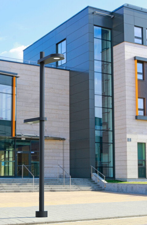 ANP Lighting’s SiteLine line of outdoor luminaires—a 2022 LightFair Innovation Award winner—solve these issues while providing a unique mounting system and clean design. They are available in 34" and 39" models with two LED types, depending on end use. When more output is required, such as for streetlights, the company offers LEDs with TIR (total internal reflection) lenses and ceramic heat sinks. (TIR LEDs provide higher-quality light than standard reflectors and have excellent directional control.) SiteLine’s TIR-based luminaires are extremely energy efficient, with efficacies up to 157 lumens per watt (lpw). For pedestrian walkways or when less glare is desired, ANP Lighting offers SiteLine luminaires with edge-lit LEDs that provide a uniform, “softer” light without visible individual LEDs at efficacies up to 131 lpw. SiteLine’s Dark Sky Friendly luminaires are available from 4,500 to 20,000 lumens in 2700K, 3000K, 3500K, and 4000K color temperatures with a wide variety of light distribution angles.